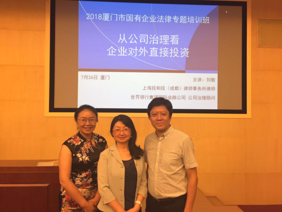 7月26日,我所刘敏律师应邀为厦门市国资委开展了主题为“从公司治理看企业对外直接投资”的课程讲授,厦门市主要国有企业和厦门市、区国资监管部门的近两百名法务人员参加了此次培训。该讲座由厦门市国资委和厦门经济管理学院联合举办,是厦门市国有企业法律专题培训班系列讲座之一,对推动国有企业法治化治理具有重要作用。