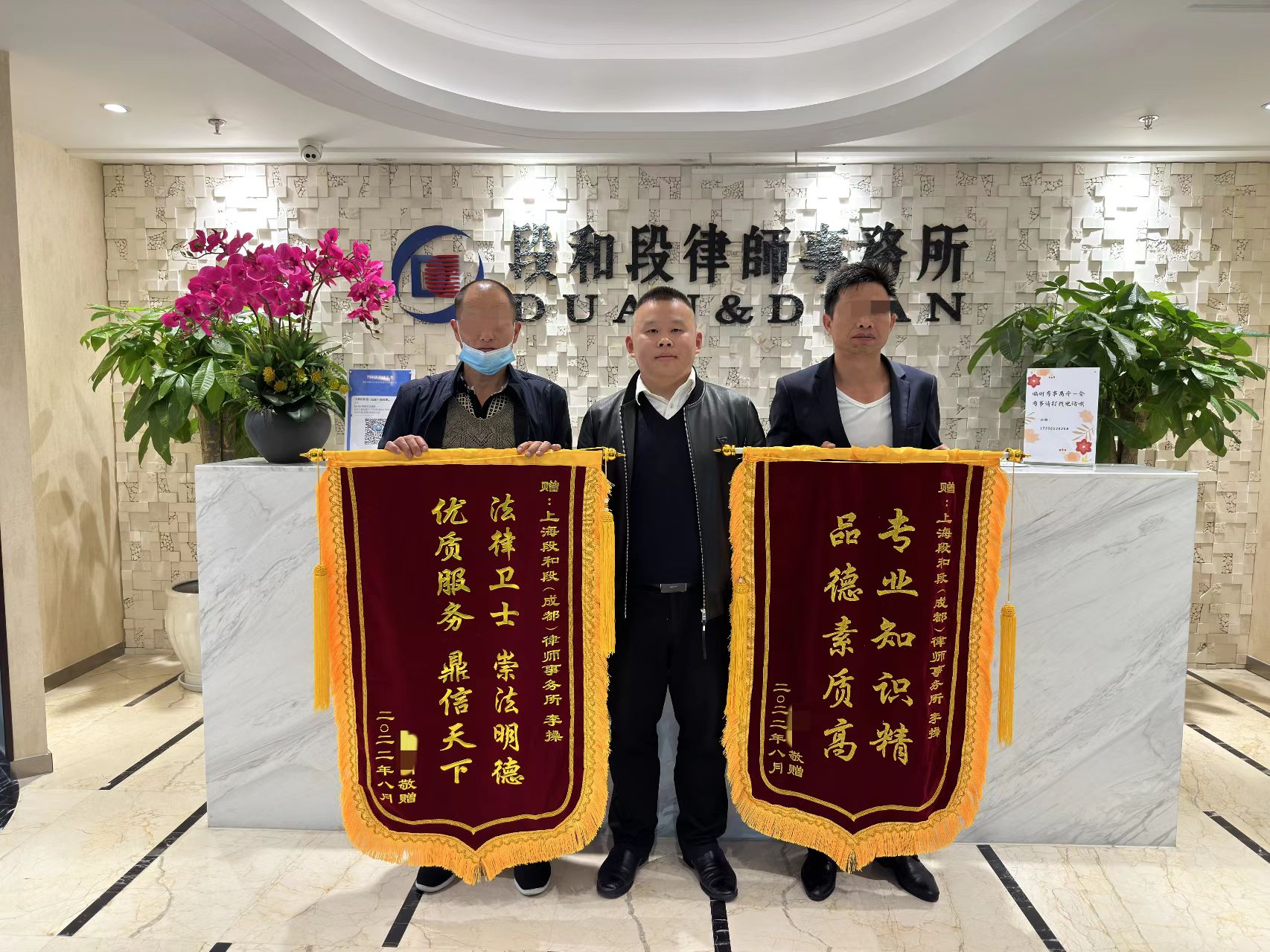 2022年11月10日上午,沈某和杨某专程从外地驱车数百里赶到成都,将两面锦旗送至李操律师手中,以示谢意。