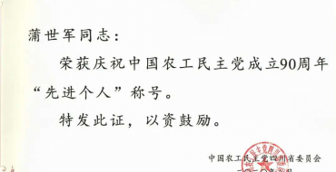 近日获悉,我所律师蒲世军荣获庆祝中国农工民主党成立9...