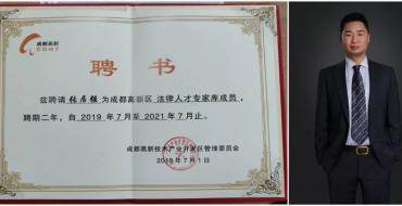 2019年10月25日,我所张居强律师被选为成都高新区人才专家库成员...