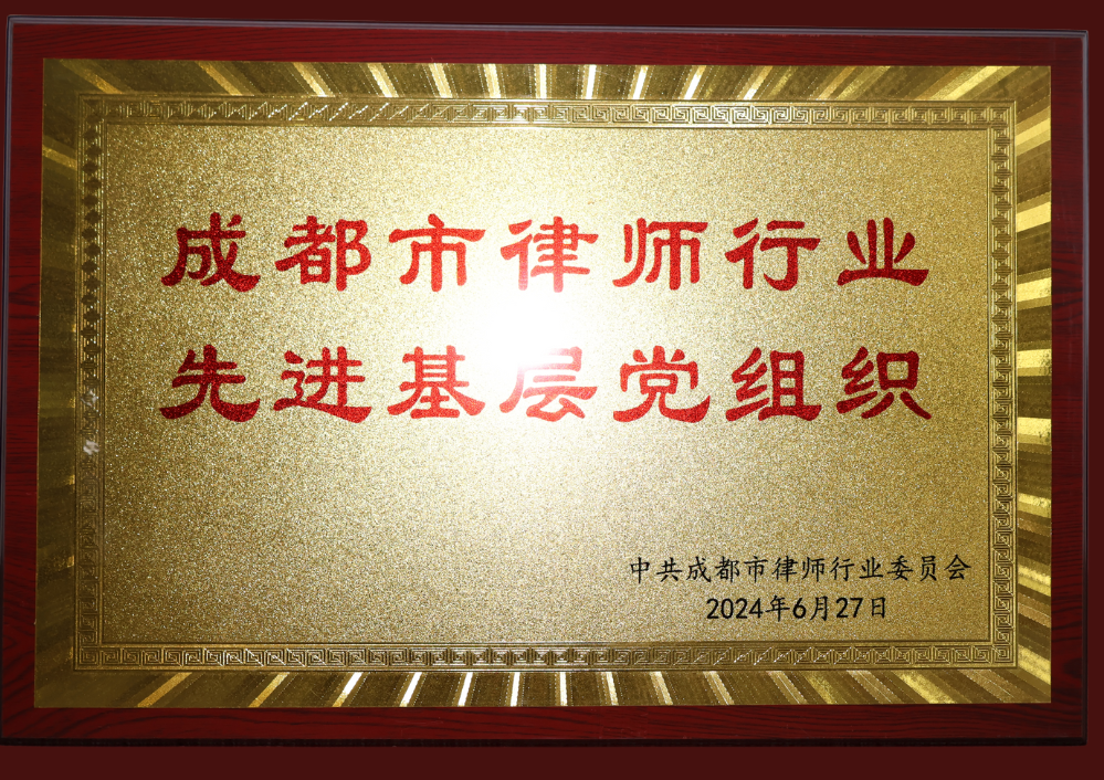 - 2024年6月中共成都市律师行业委员会授予我所“成都市律师行业先进基层党组织”荣誉称号。