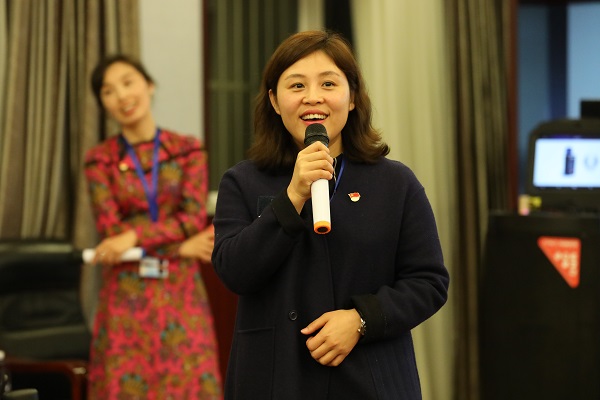 图为余丽萍律师作为党总支组织委员做表态发言