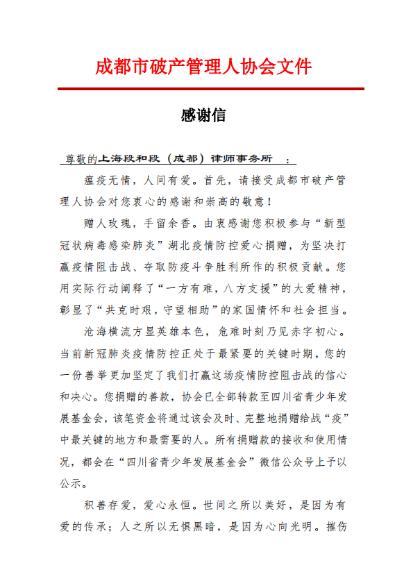 段和段律师面对疫情,一定做到把思想和行动统一到习近平总书记重要指示精神上来,在积极投身防疫工作和法律服务工作中践行初心使命;我们相信在党和政府领导下,全国人民各尽其责,同舟共济,众志成城,共克时艰,一定能打赢这场疫情防控战。