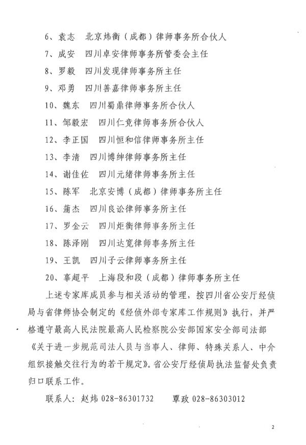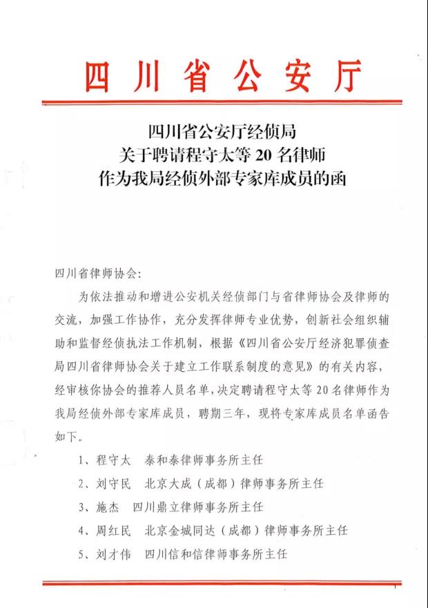 2020-07-09 浏览次数:33为依法推动和增进公安机关经侦部门与省律师协会及律师的交流,加强工作协作,充分发挥律师专业优势,创新社会组织辅助和监督经侦执法工作机制,根据《四川省公安厅经济犯罪侦查局四川省律师协会关于建立工作联系制度的意见》的有关内容,经审核协会的推荐人员名单,四川省公安厅经济犯罪侦查局发文聘请辜超平律师作为专家库成员。
