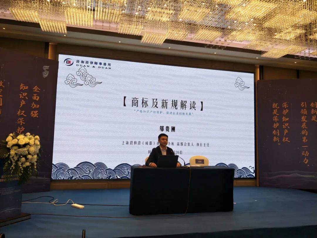 下午,我所执行主任邬贵刚作为本次活动唯一受邀律所代表,参与了企业知识产权业务专题培训。邬主任就“商标法新增内容解读及实操建议”主题展开分享。他以中美贸易战开篇入题,结合习近平总书记的讲话全方位表达了知识产权保护的重要性。培训过程中,邬主任结合自身承办的知识产权相关案例,分享了《商标法》新规亮点,严谨专业,幽默风趣,给现场嘉宾带来了很多思考。